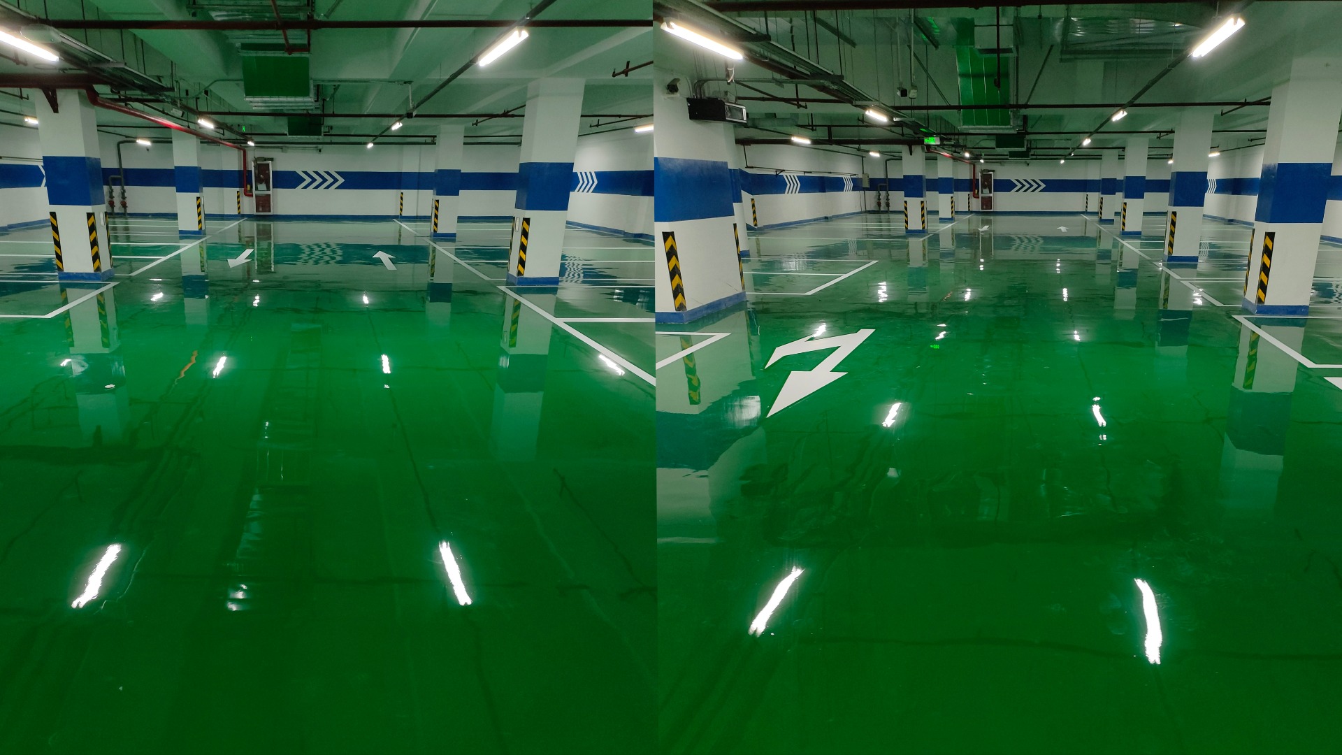 • 核心优势:耐磨抗压:可承受频繁车辆碾压、重物停放,不易起砂开裂 ◦ 防尘洁净:表面致密无缝,杜绝粉尘滋生,便于日常清洁维护 ◦ 防滑安全:适度粗糙度设计,避免车辆起步/刹车时打滑。◦ 环保可选:水性配方低VOC、无异味,适用于密闭地下空间。 • 适用场景:标准停车位、行车通道、等候区等平缓区域