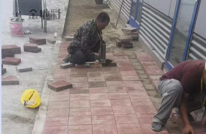 3.脱模粉施工:压印前均匀撒布专用脱模粉,有效防止模具与地面粘连,保障小方块纹理完整清晰,便于后续脱模作业