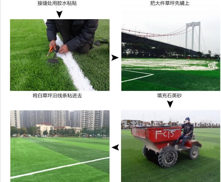 铺装人造草坪场地第四步:粘合草皮。