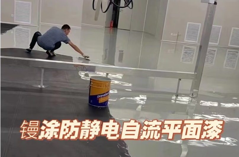 6. 防静电面漆施工:采用环氧防静电自流平面漆,均匀镘涂施工,厚度控制在1.0mm~3.0mm,表面无气泡、无刀痕、色泽一致。