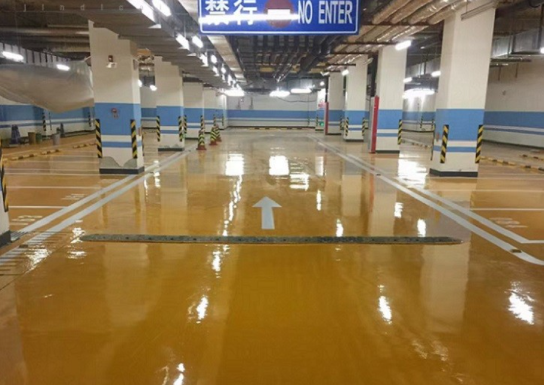 本次翻新工程严格参照**《地坪涂装材料》(GB/T 22374-2018)、《环氧树脂地坪工程技术规程》(CECS 328:2012)** 等规范执行,结合地下车库潮湿、重载、高频使用的特性,选用无溶剂环氧地坪漆体系,采用“基层彻底处理+环氧底漆+环氧中涂砂浆+环氧腻子+环氧面漆”的复合型施工工艺。该工艺具备优异的附着力、抗压强度、耐冲击性与防潮抗渗性,可有效适配地下车库复杂使用环境,解决原有地坪易破损、难维护的痛点。